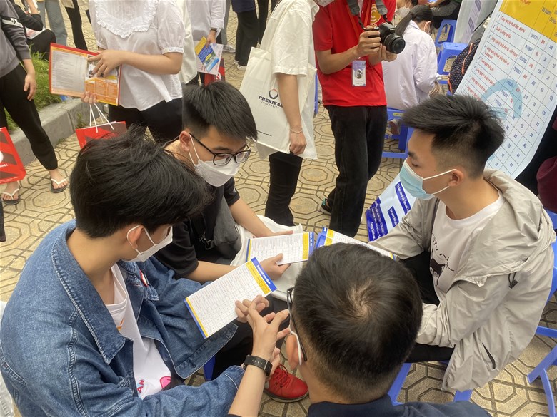 Hình 1: Nhiều bạn học sinh quan tâm đến các ngành học tại trường Đại học Điện lực
